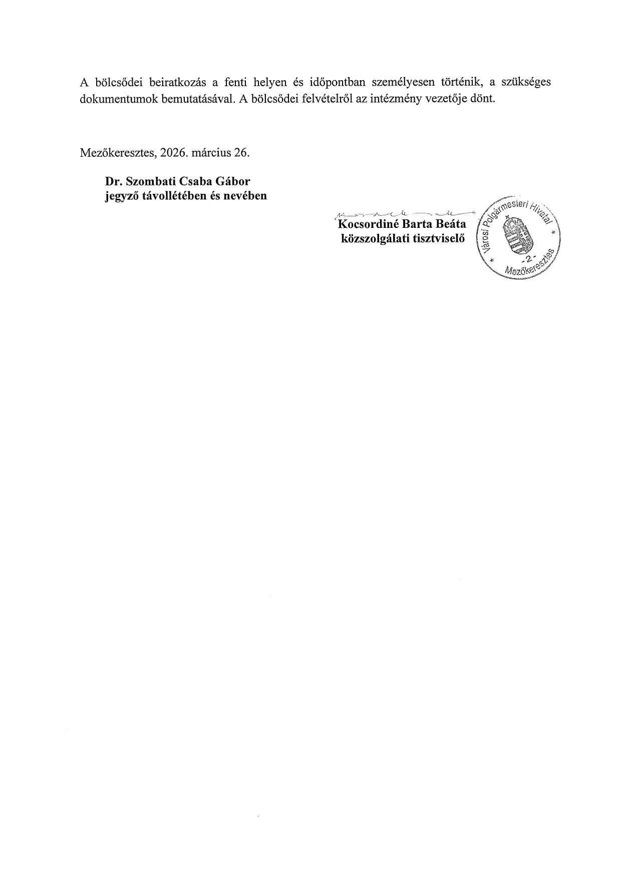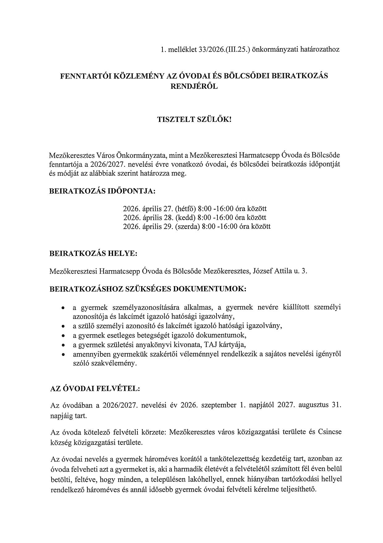 Zöldhulladék szállítás 2026. április 3. Tájékoztatjuk a Tisztelt Lakosságot, hogy 2026. április 3-án indul településünkön a zöldhulladék szállítás. A gyűjtésre rendszeresített zöldhulladék gyűjtő zsákot igényelhetnek a Mezőkeresztesi Polgármesteri Hivatal 5. számú szobájában.