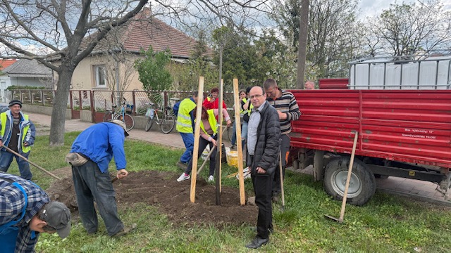 A pályázati döntés által két hete 20 db gömb szivarfát kaptunk, melyek elültetésére erdészeti egyeztetést követően a mai nap került sor Mezőkeresztesen. 10 db fa az önkormányzat által a Szentistváni utca 70 – 108. szám közötti szakaszon lett elültetve. A fennmaradó 10 db fa a Mezőkeresztesi Kossuth Lajos Általános Iskola együttműködésével, az általános iskola tanulóinak bevonásával, az iskola területén lett elhelyezve.